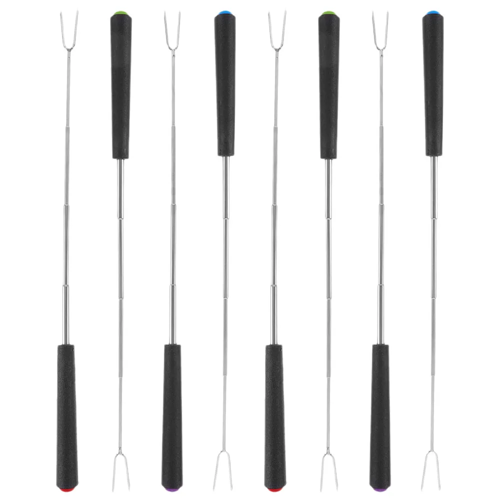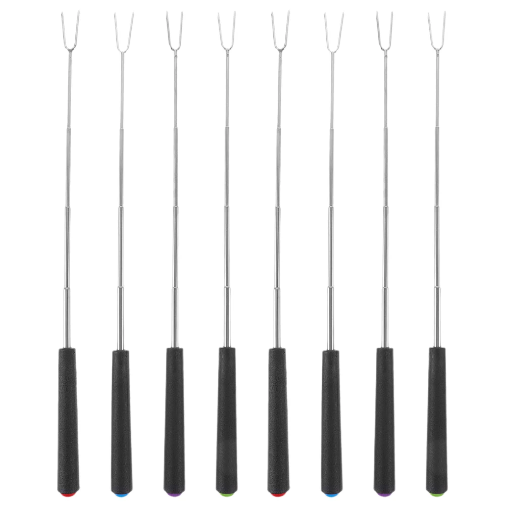 8 Pcs Barbecue Fork Dinner Forks Bbq Sticks Skewers Appetizer Spoons Expandable Camping Toaster