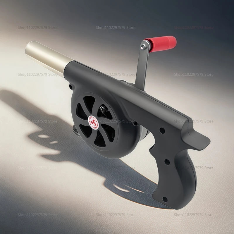 Crafted from durable, heat-resistant materials, the blower is built to withstand repeated outdoor use. Its lightweight design makes it easy to carry, while the ergonomic hand-crank mechanism ensures smooth and comfortable operation. Unlike electric blowers or chemical fire starters, this tool is completely manual, safe to use, and environmentally friendly—no batteries, no cords, and no harmful chemicals required. With just a few turns of the handle, you can direct airflow exactly where it’s needed, fueling your charcoal or wood fire efficiently.