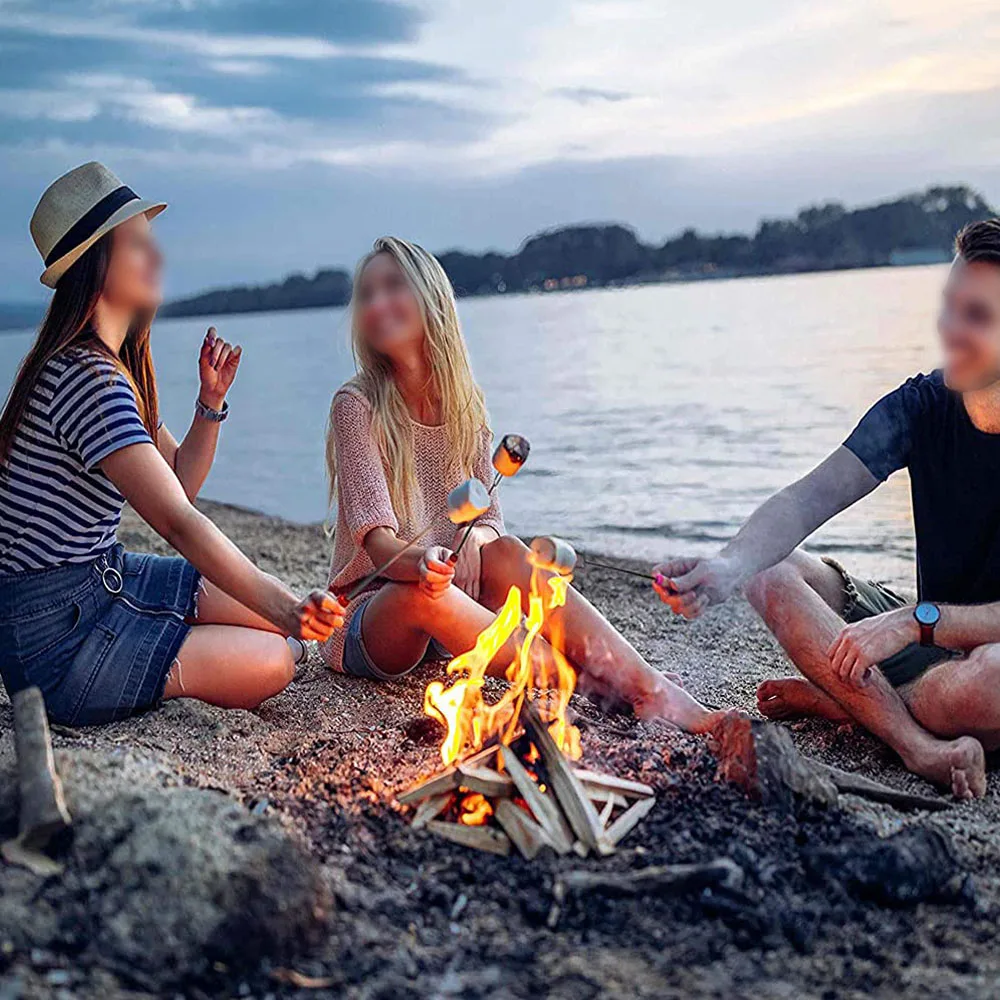 Experts recommend our 32-inch baking sticks for kids and adults. You can make sure your kids are always at a safe distance from the campfire, grill or campfire while toasting marshmallows or hot dogs. The ends of the sticks are non-sharp prongs, blunt flat design to prevent kids from hurting your fingers by accidentally hurting themselves or others.