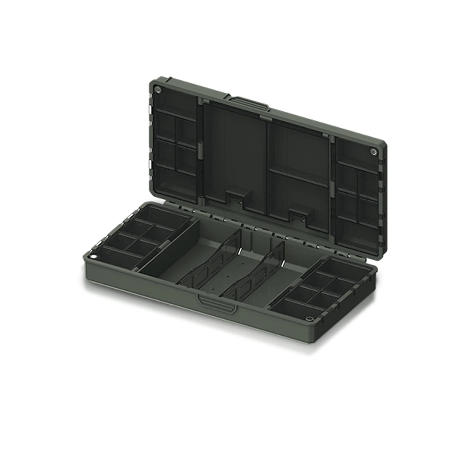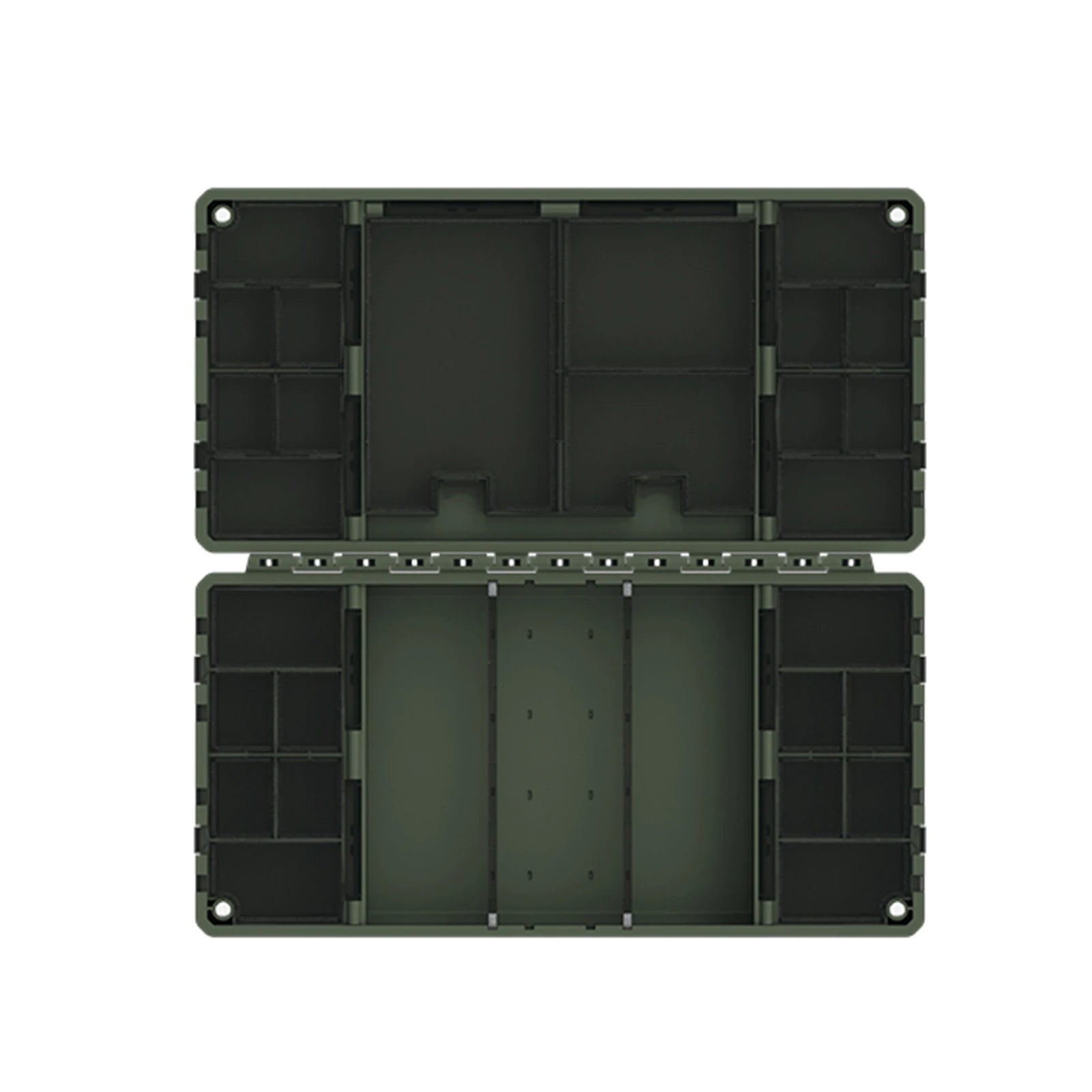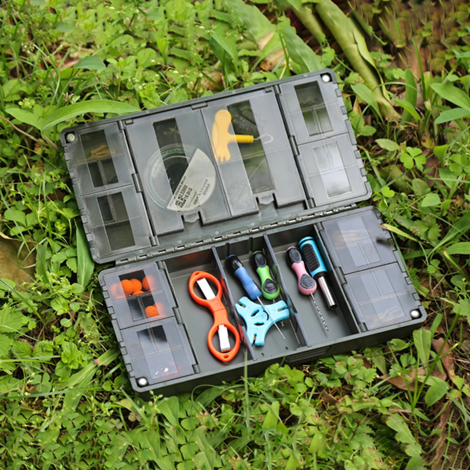 2. Multi-Compartment Design: Features multiple compartments with adjustable dividers to fit various sizes of fishing accessories.