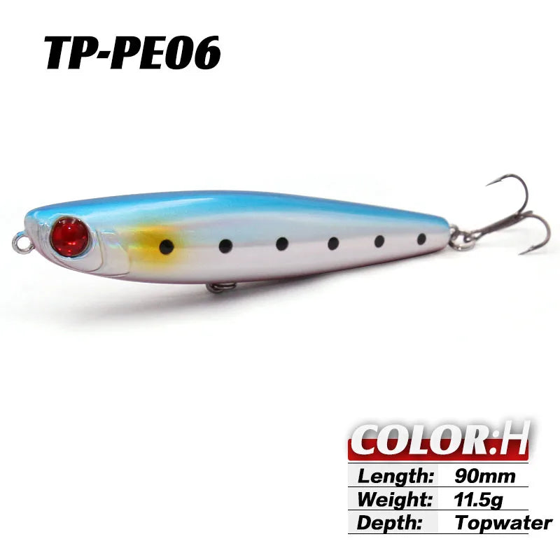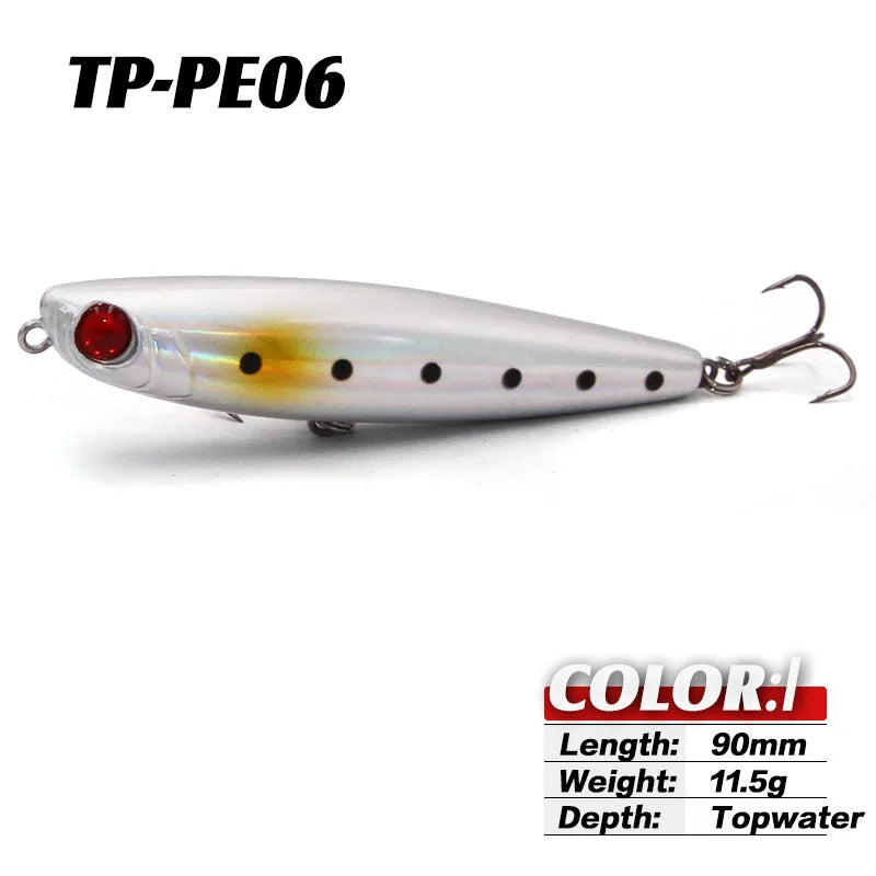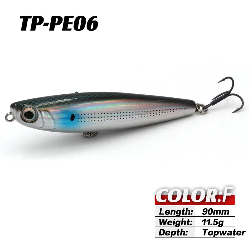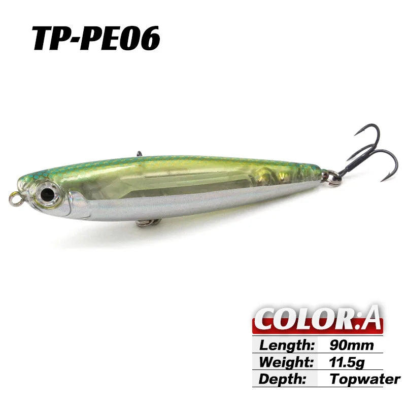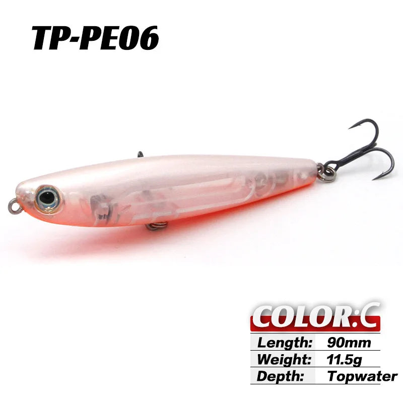 TacklePRO-PE06 Gloss Fishing Lure, Pencil StickBait, 90mm, 11.5g Floating Wobblers, Artificial Hard Baits, Vobler, 6 Colors