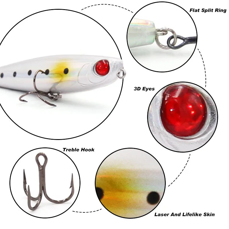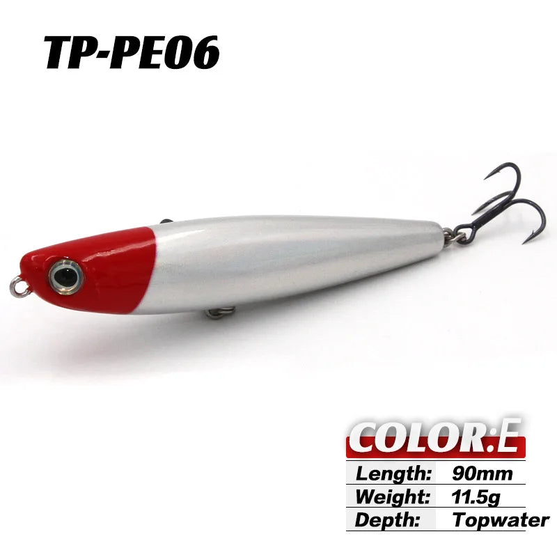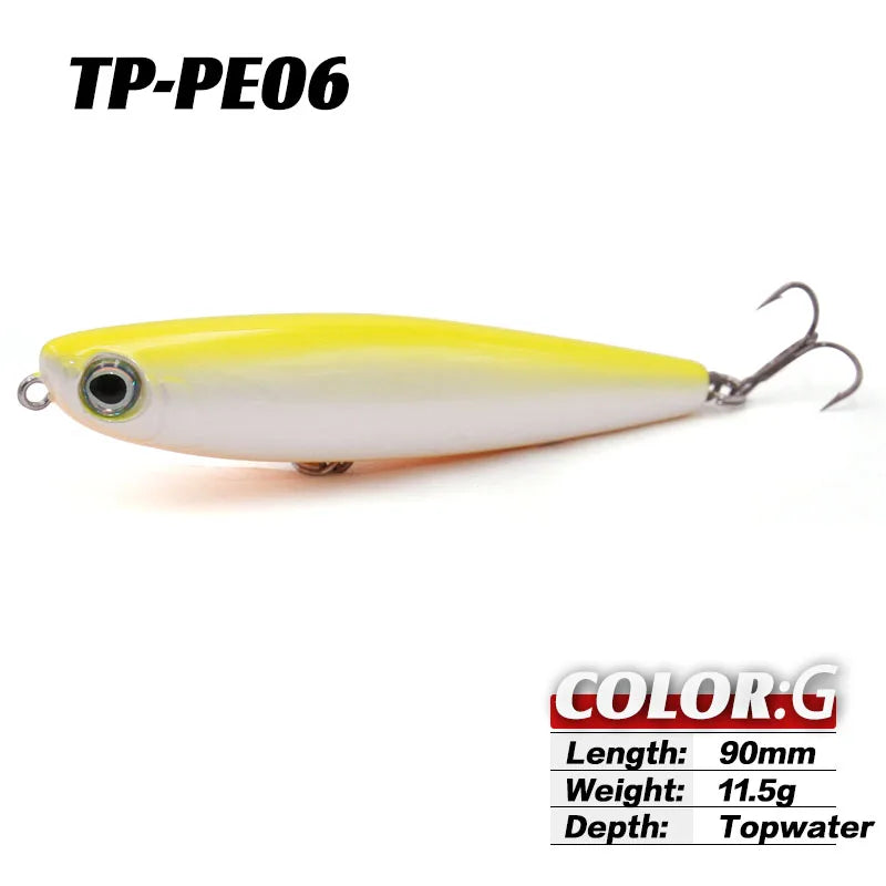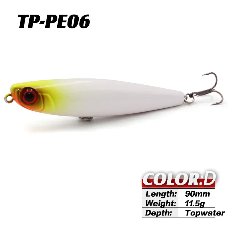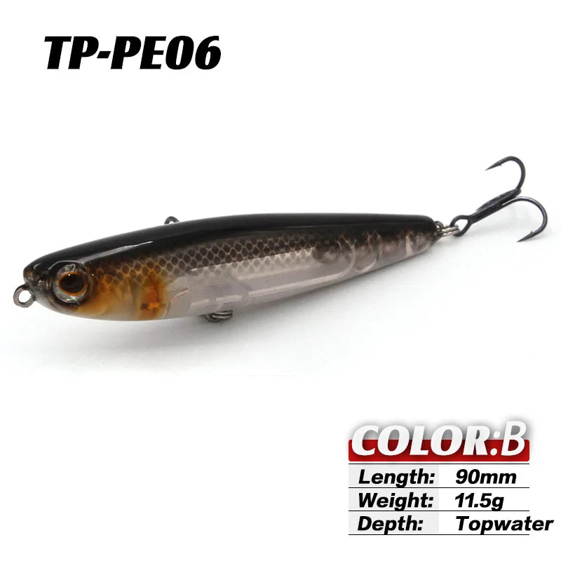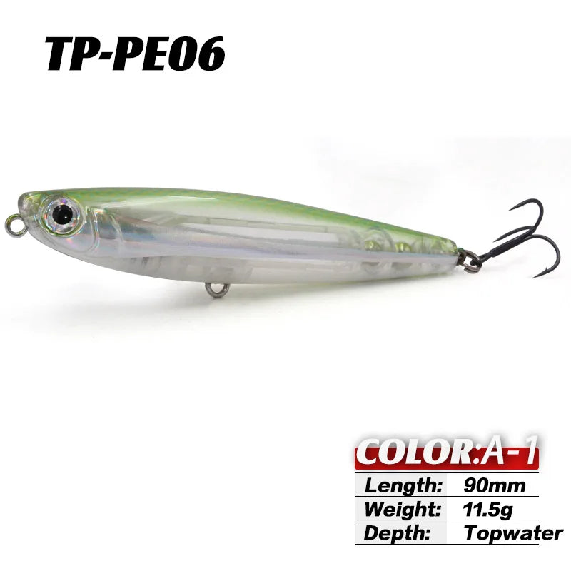TacklePRO-PE06 Gloss Fishing Lure, Pencil StickBait, 90mm, 11.5g Floating Wobblers, Artificial Hard Baits, Vobler, 6 Colors