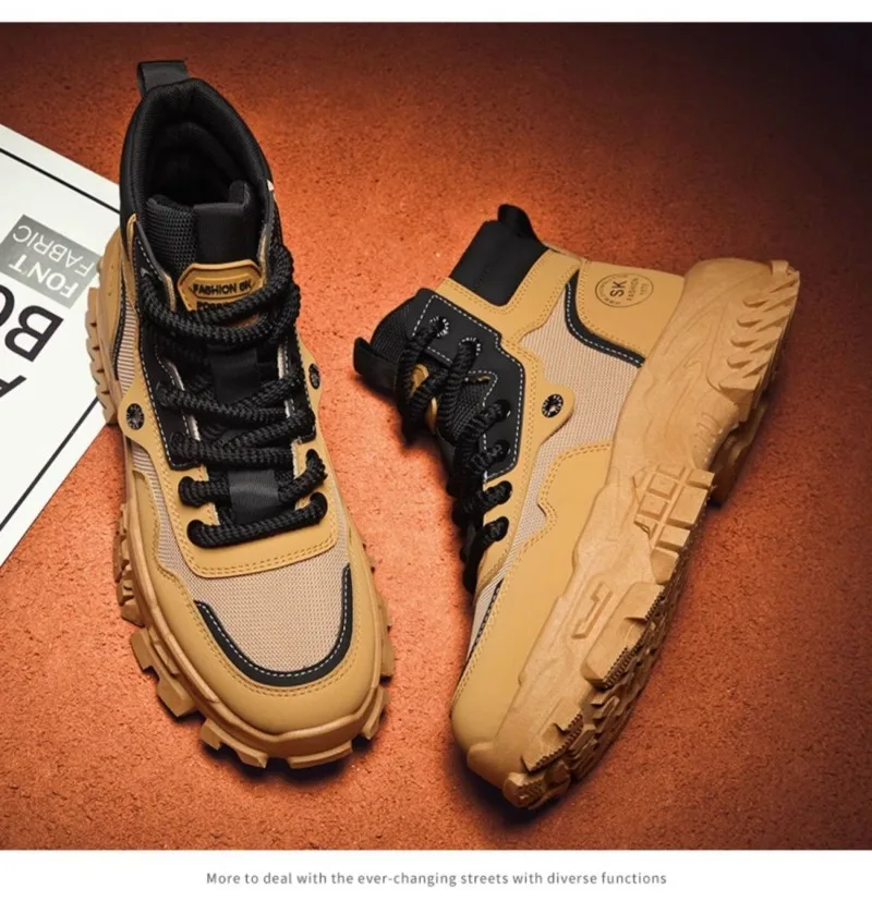 Men's High-top British Style Retro Tooling Boots Outdoor Mountaineering Desert Combat Rhubarb Boots Fad Man Shoes Zapatos Hombre