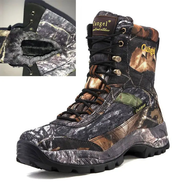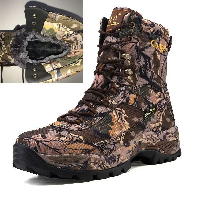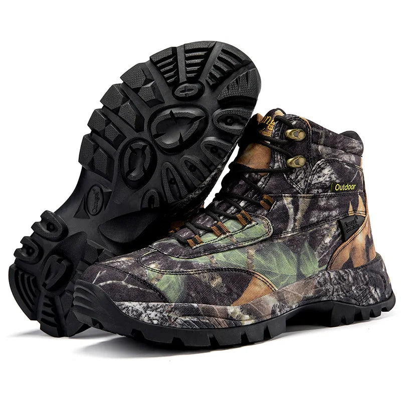 Men's High Top Camouflage Hunting Boots Breathable Tactical Shoes Outdoor Hiking Wear-Resistant Waterproof Mountaineering Boots