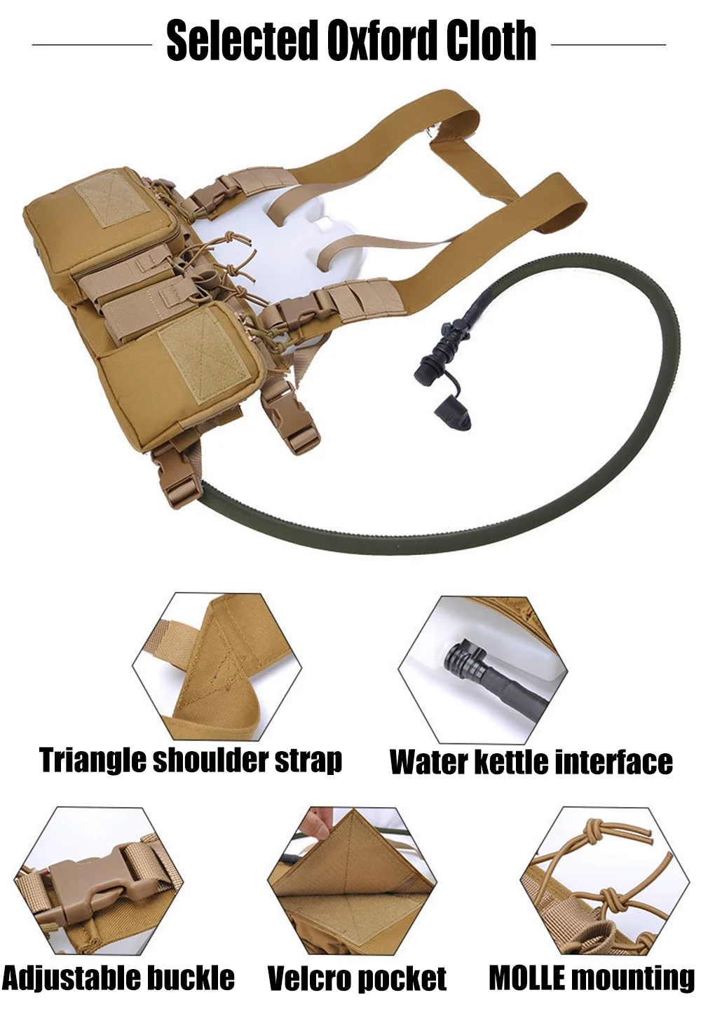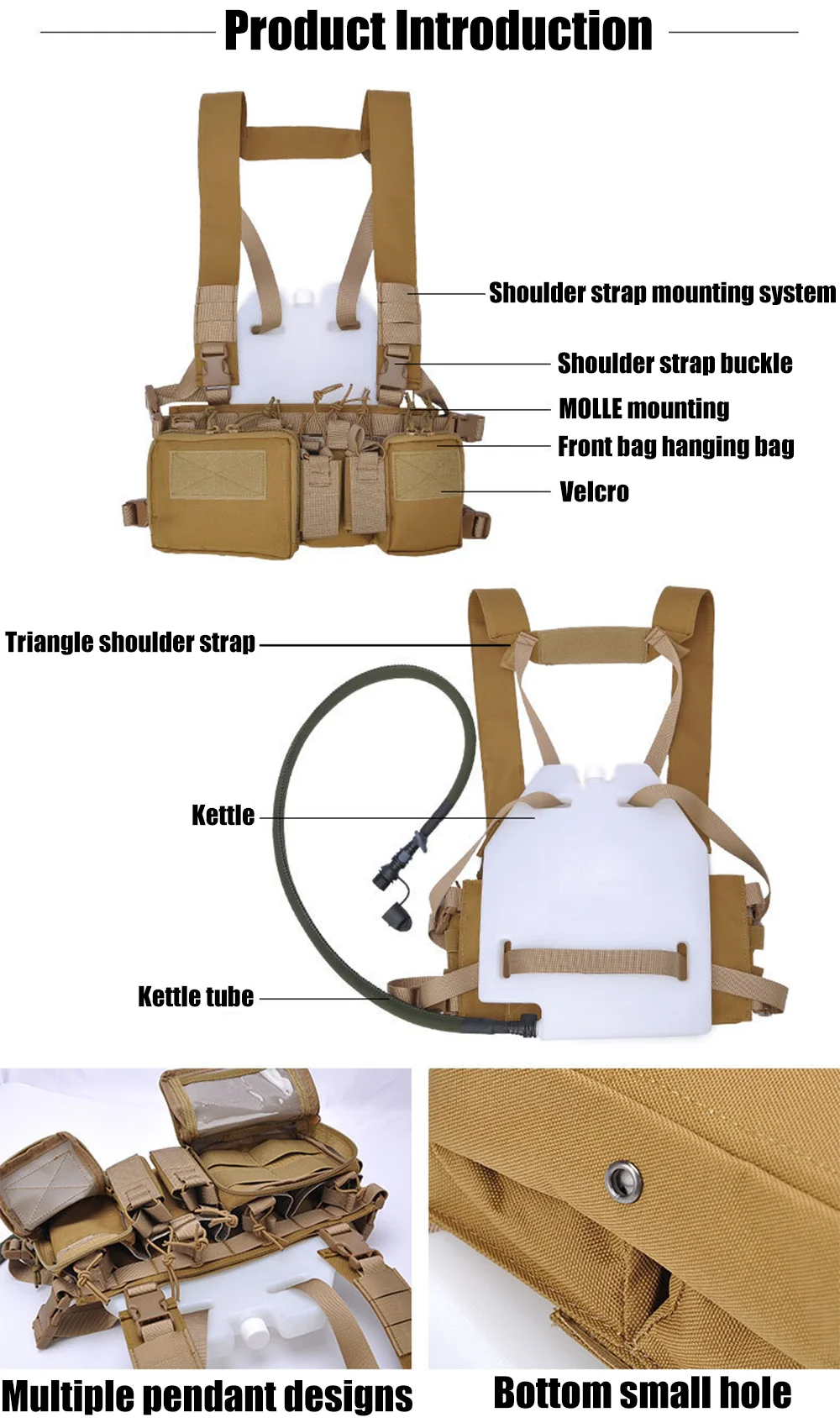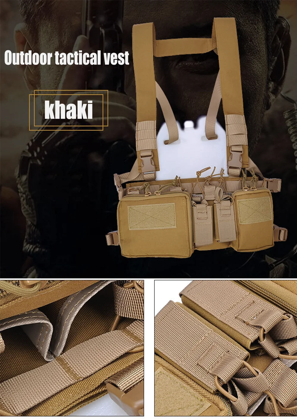 1. Made of 500D Nylon,with high tensile strength, aberration resistance, and sturdiness,designed to be a lightweight and versatile vest.